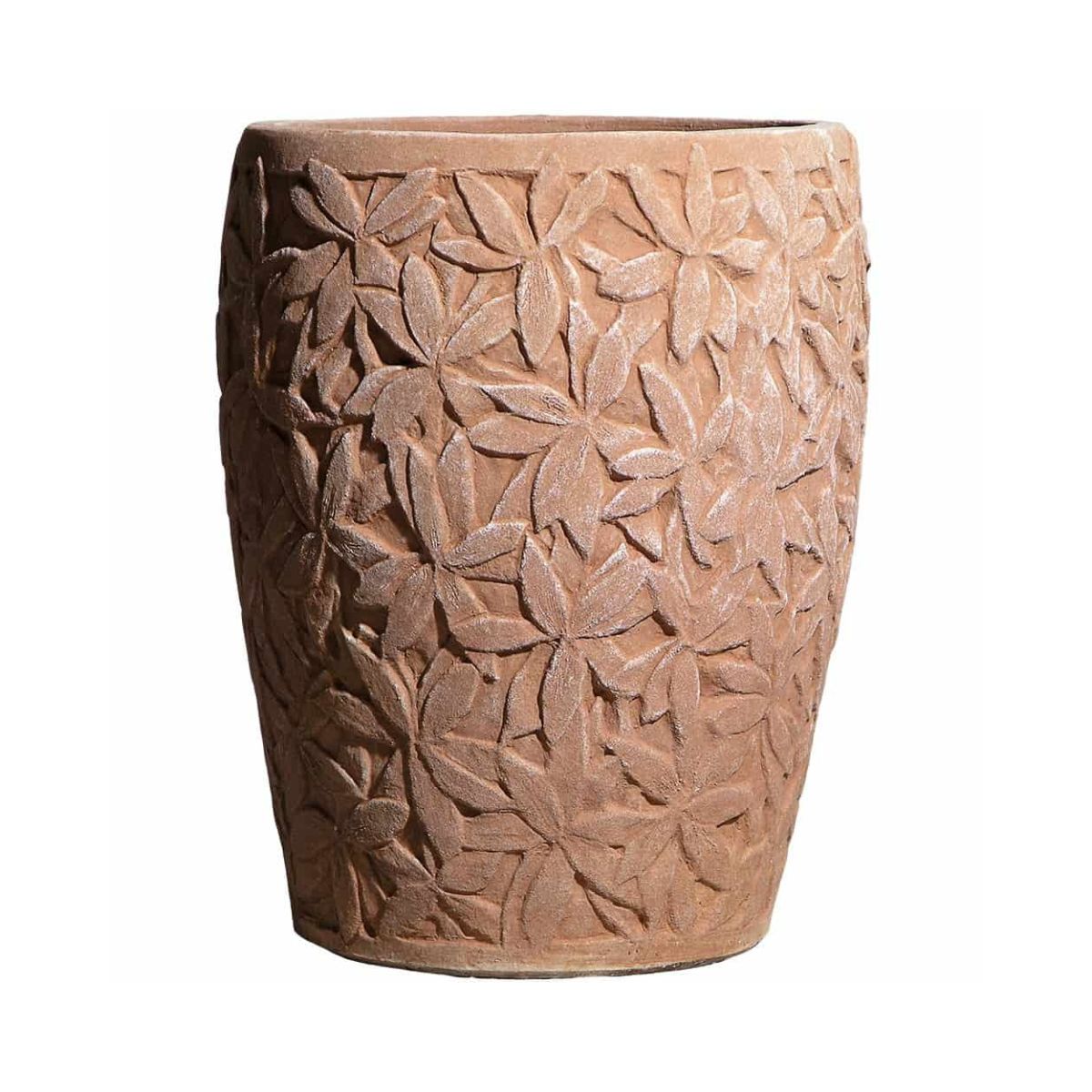 Terakotový obal Alloro je jedinečný designový kus inspirovaný symbolem vavřínu, který od pradávna představuje vítězství, krásu a harmonii. Povrch je tvořen bohatou strukturou vzájemně propletených listů, které vytvářejí hluboký a živý reliéf.