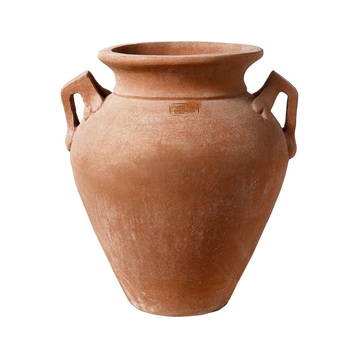 Terakotová amfora s etruskými uchy je ručně vyráběná z pravé toskánské terakoty Impruneta a inspirovaná etruskými originály. Díky tomu působí nádoba lehce, harmonicky a mimořádně dekorativně.