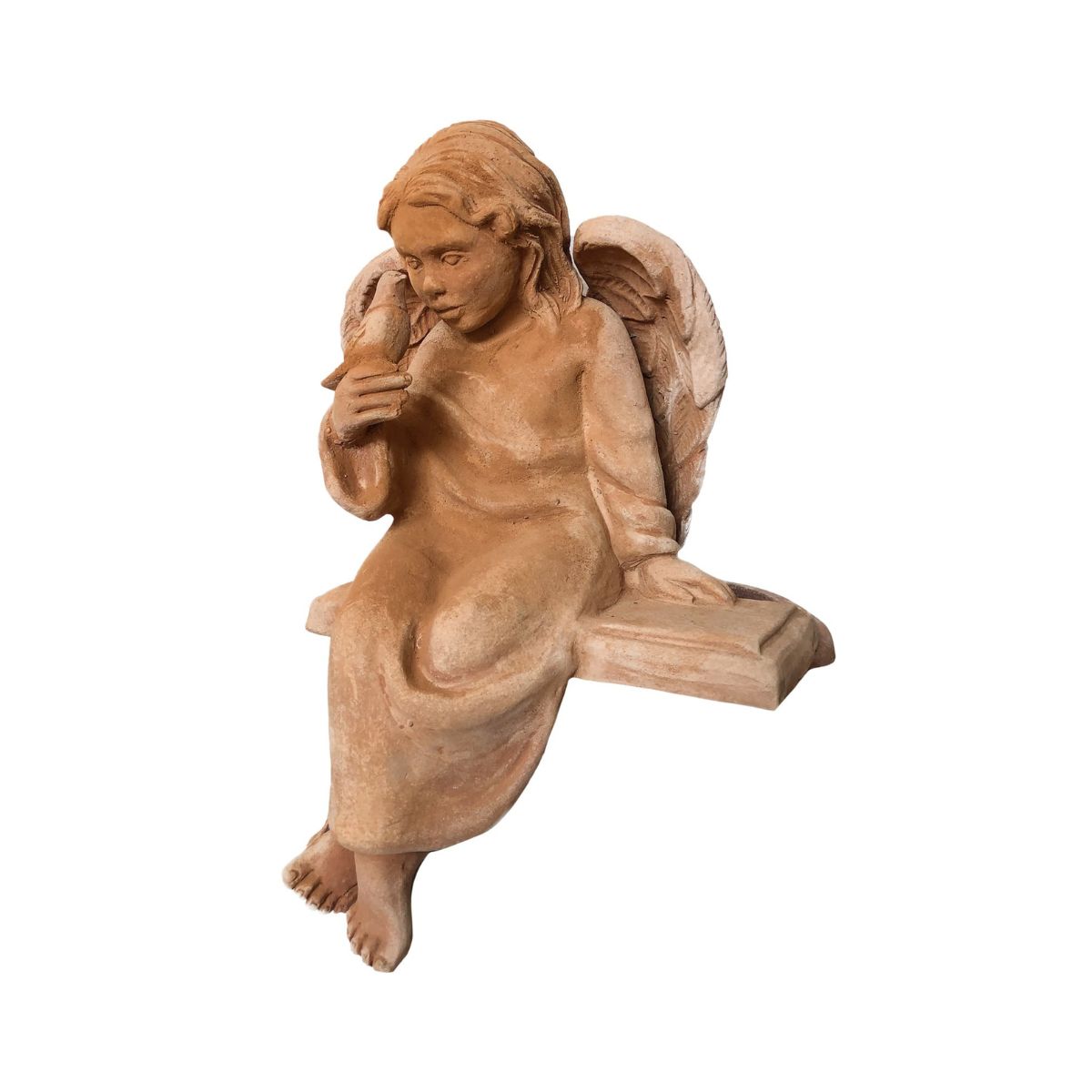 Jemná terakotová socha sedícího anděla s ptáčkem přináší do prostoru klid, harmonii a něhu. Detailní ruční zpracování podtrhuje výraz i přirozenou krásu materiálu. Ideální dekorace pro zahradu, terasu i interiér.