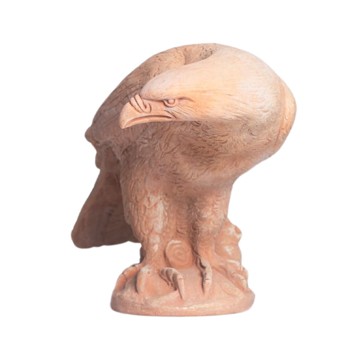 Sokol je od pradávna vnímán jako symbol bdělosti, odvahy a rychlé reakce. V mnoha kulturách představuje nejen ochranu, ale i posla změn a nových začátků. Tato terakotová socha zachycuje jeho soustředěný výraz a klidnou, avšak napjatou energii.