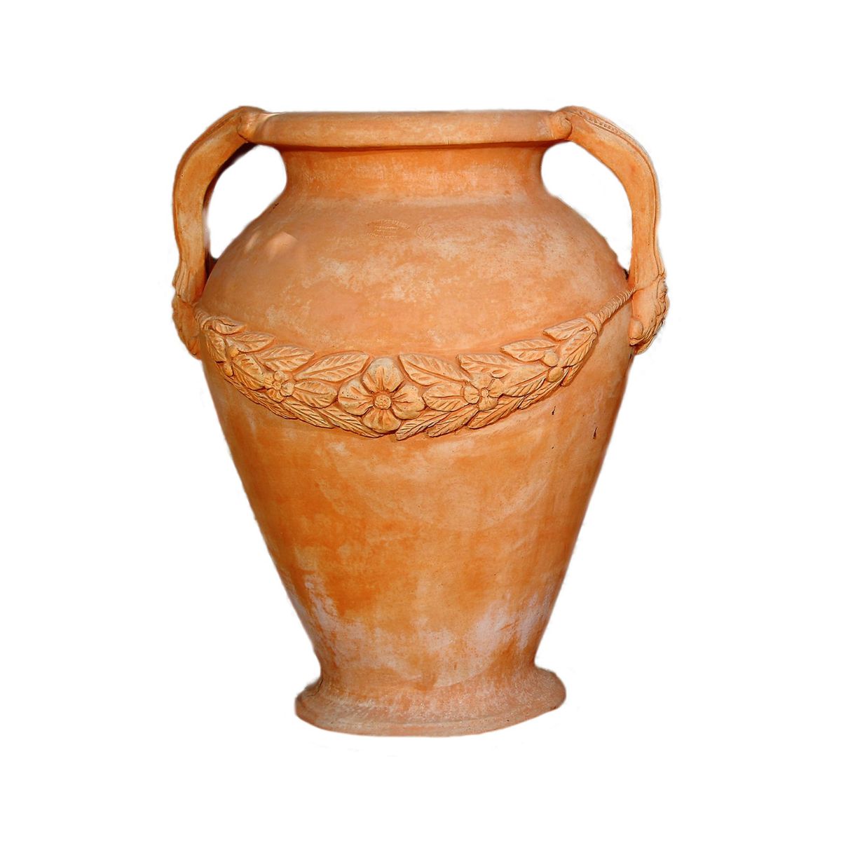 Terakotová amfora Festonata vychází z tradičního tvaru středomořských amfor, které byly po staletí symbolem elegance, řemesla a kultury. Její silueta s výraznými uchy a bohatým dekorem v podobě festonů z ovoce a květin odkazuje na klasické italské zahrady a historické vily.