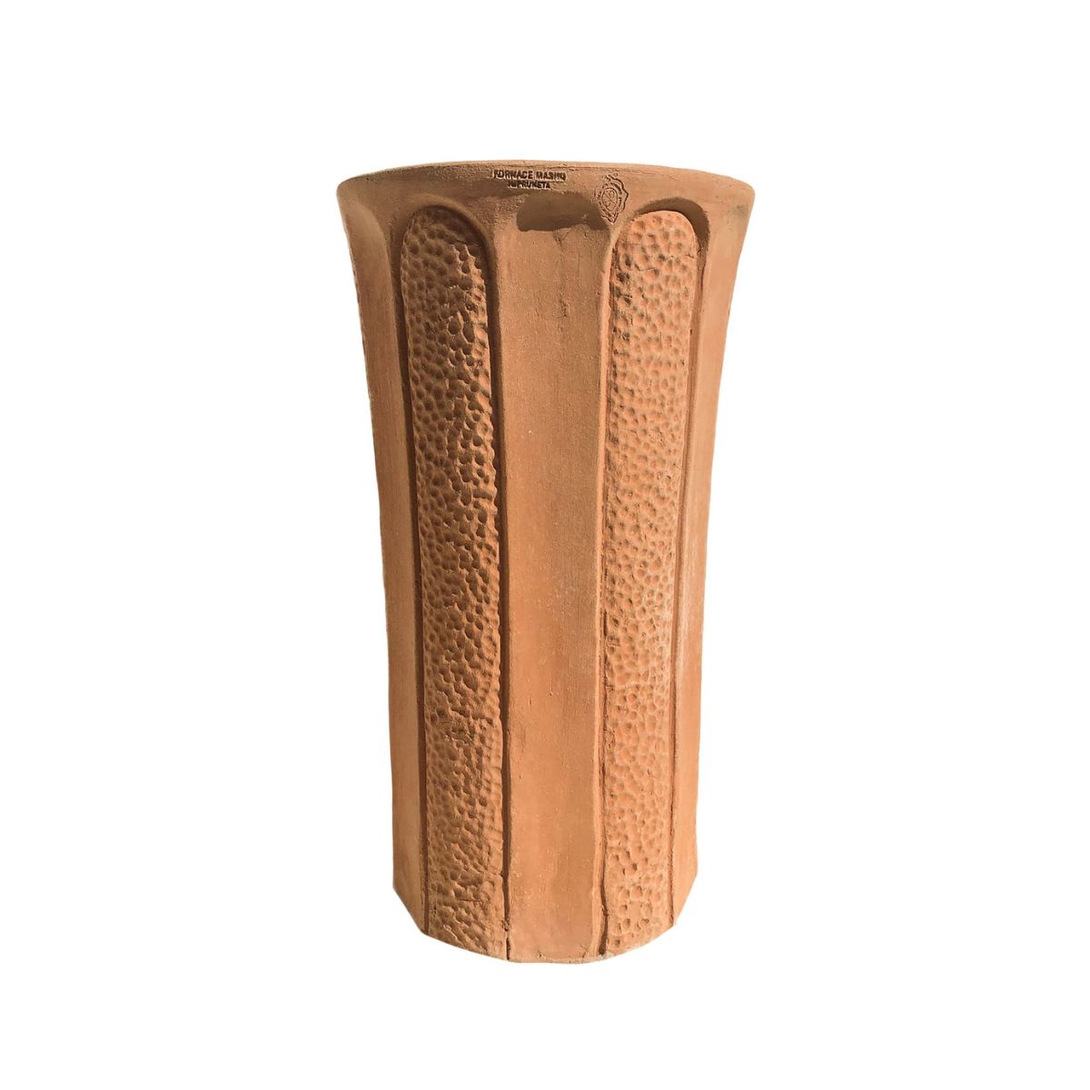 Elegantní vysoká terakotová váza z Imprunety s výraznou vertikální strukturou. Ruční výroba, mrazuvzdorná a ideální pro moderní i klasické prostory.