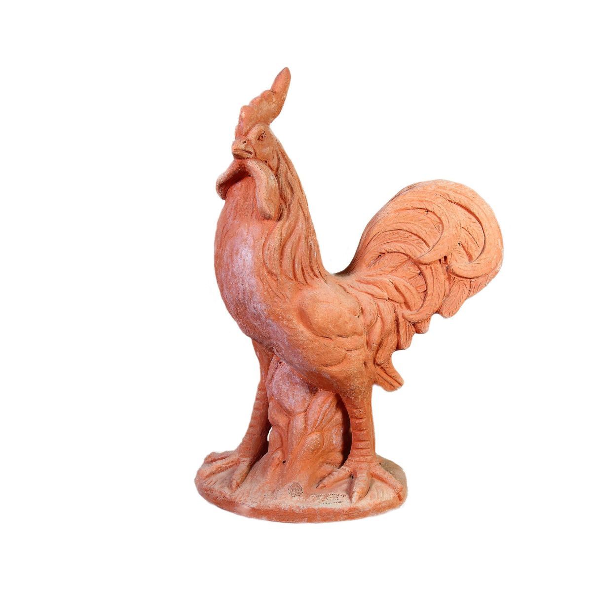 Tato terakotová socha zachycuje kohouta v hrdém a vzpřímeném postoji, který dodává prostoru energii a výrazný charakter. Skvěle se uplatní jako solitérní dekorace i jako součást zahradní kompozice.