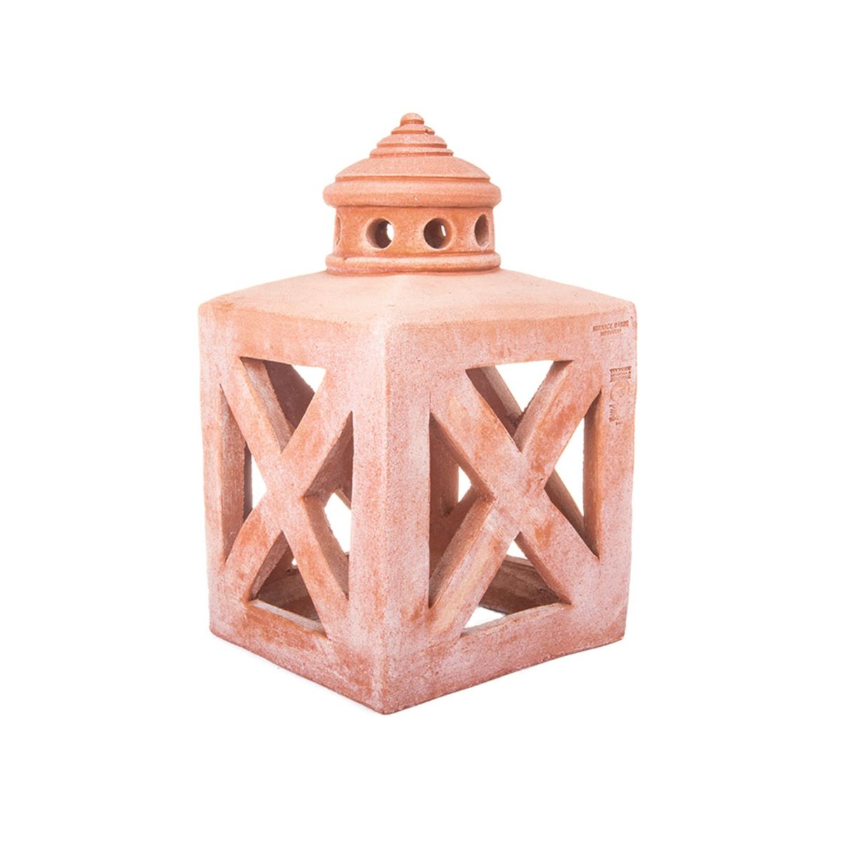 Terakotová lucerna Lanterna Incrociata vyniká svým charakteristickým křížovým motivem, který vytváří jedinečnou hru světla a stínu. Jednoduchý tvar v kombinaci s precizním řemeslným zpracováním působí klidně a vyváženě.