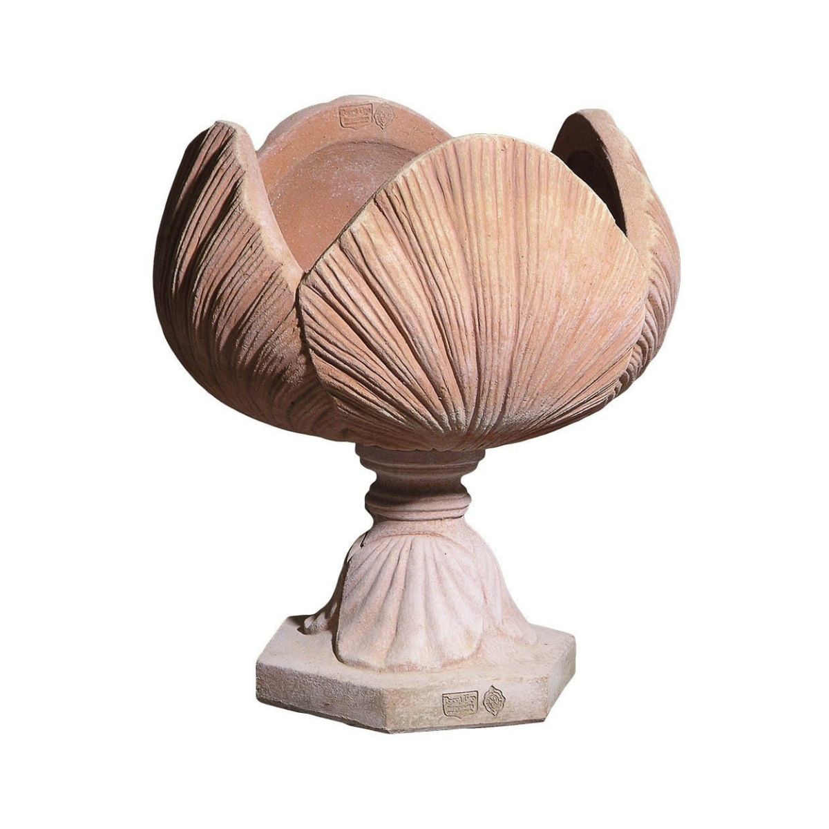 Dekorativní mísa Leaf na podstavci zaujme originálním designem tvořeným čtyřmi stylizovanými listy. Ručně vyráběná z imprunetské terakoty je výrazným prvkem pro zahradu, terasu i reprezentativní prostory.