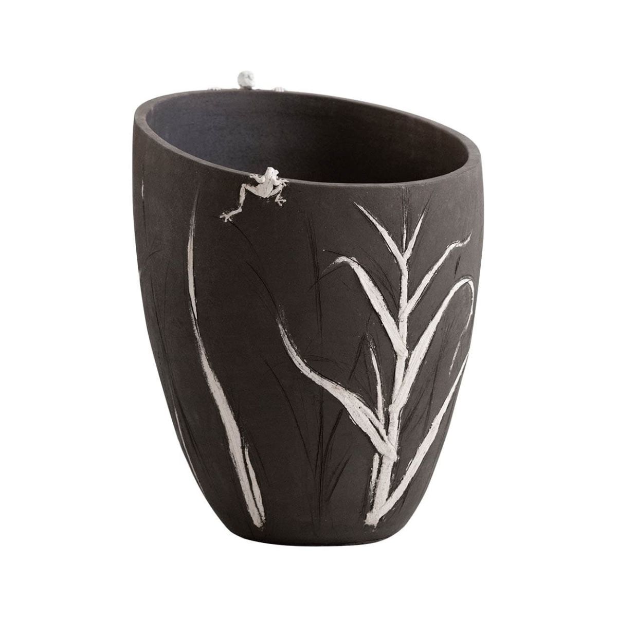 Umělecká terakotová váza Lo Stagno z kolekce LIGAMINA vytvořená ve spolupráci s umělkyní Maria Chiara Cecconi. Ručně vyráběná z imprunetské terakoty v antracitovém odstínu a zdobená bílými plastickými motivy inspirovanými přírodou. Designový květináč vhodný pro interiér i moderní zahrady.