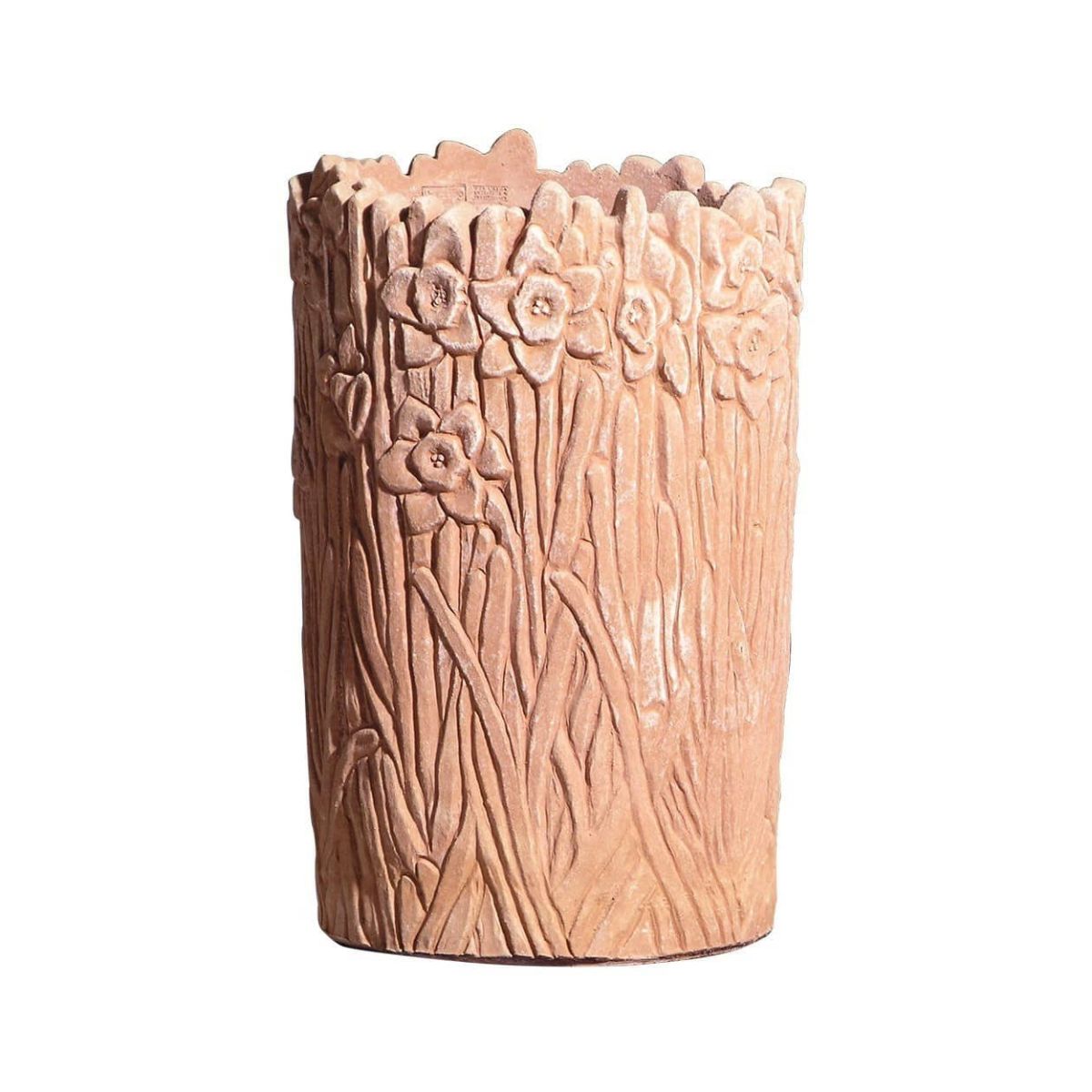 Terakotový obal Narcisi je výjimečný svým výrazným plastickým dekorem inspirovaným květy narcisů. Bohatý reliéf vyniká svou hloubkou a detailním zpracováním, které dodává produktu umělecký charakter.