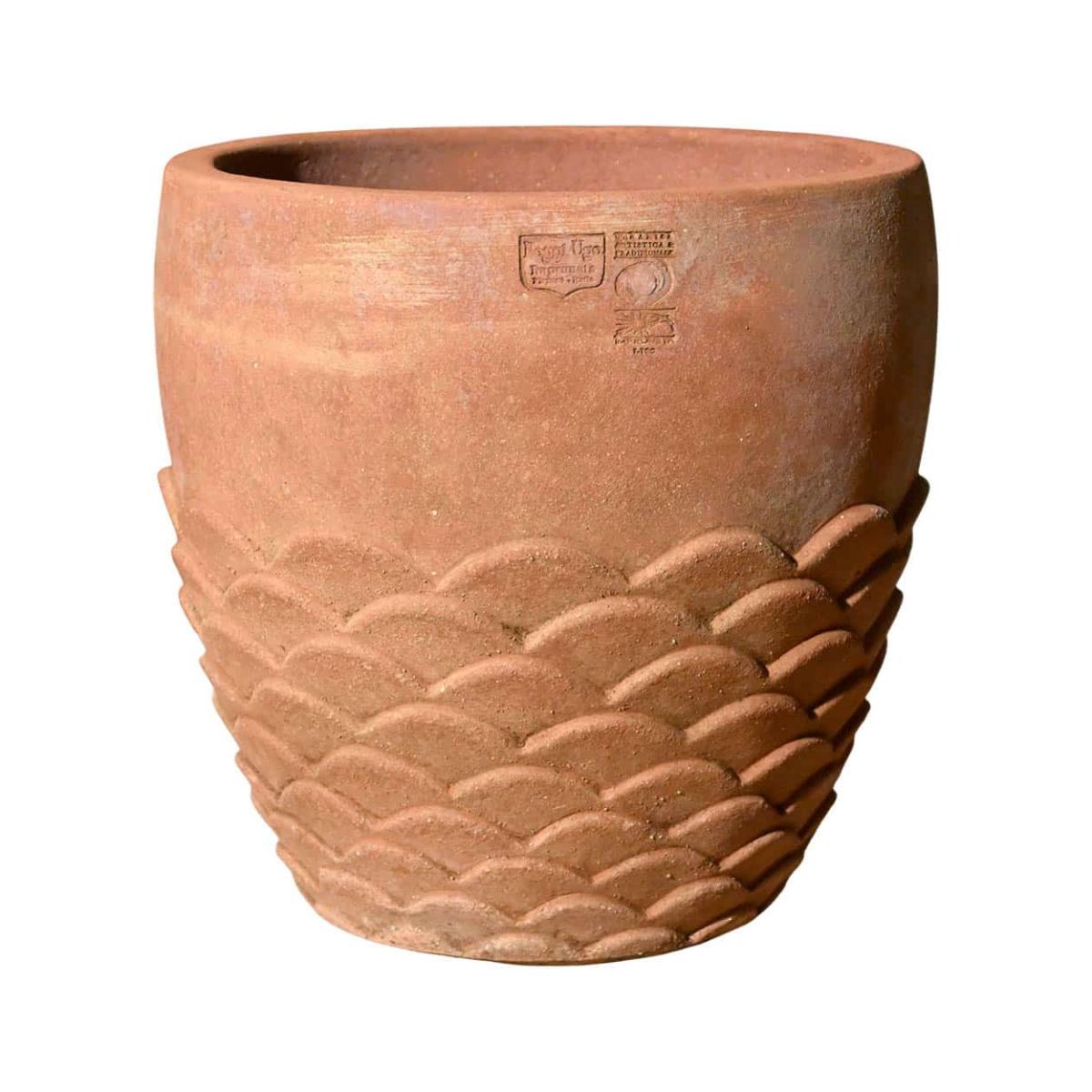 Květináč je vyroben z originální terakoty z oblasti Impruneta v Toskánsku, která je známá svou vysokou kvalitou a odolností. Každý kus je ručně vyráběn tradiční metodou a následně vypalován při vysokých teplotách.