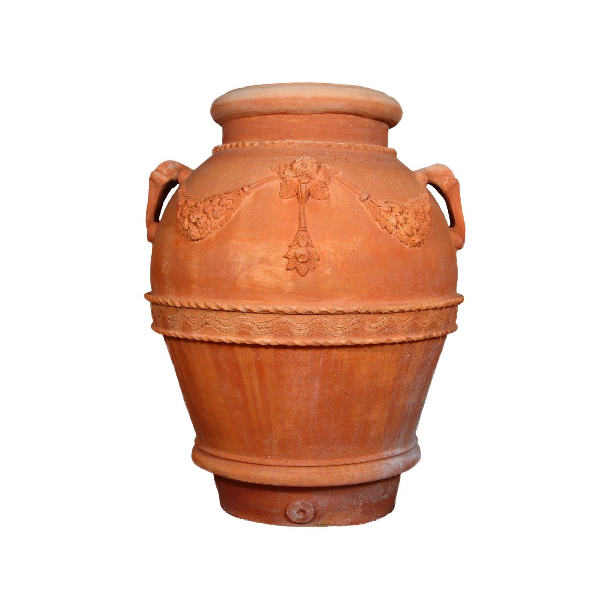 Terakotový orcio del ‘600 vychází z tradičních italských nádob 17. století. Typické zdobení v podobě girland s ovocem, květin a jemných detailů dodává tomuto modelu autentický historický charakter.