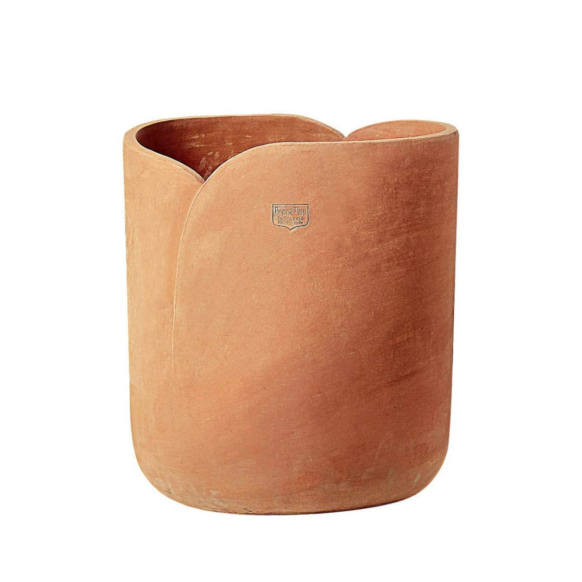 Autorský terakotový květináč inspirovaný tvarem tulipánu. Elegantní designový objekt, který propojuje organickou formu s architekturou prostoru.