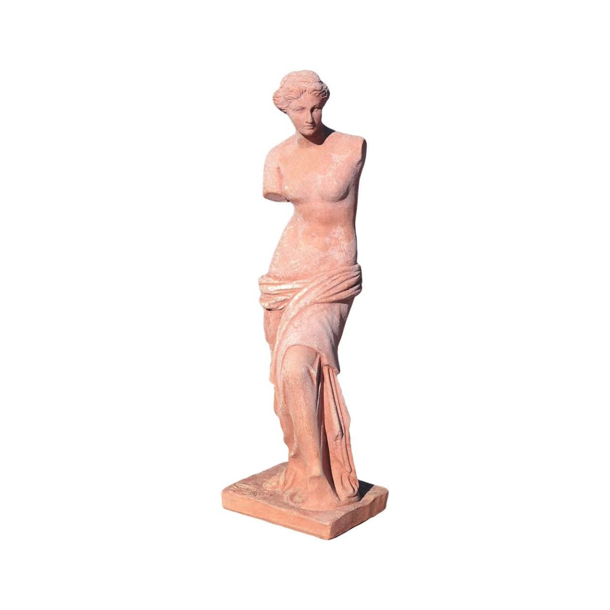 Elegantní terakotová socha Venuše de Milo inspirovaná slavným antickým dílem řeckého sochařství. Socha je ručně vyráběna z tradiční imprunetské hlíny v Toskánsku a díky speciálnímu výpalu je mimořádně odolná vůči mrazu až do –30 °C.